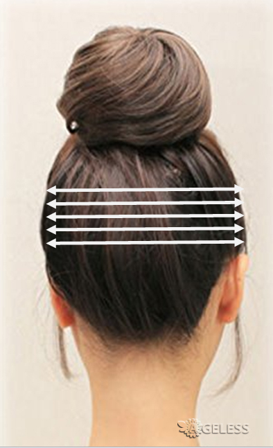 Нужно провести строго над верхушками ушей воображаемую прямую линию. И от нее широким пластом мышечным усилием растягивать заднюю часть головы (область затылка) от центра в стороны. Растянуть, задержаться в этом положении на 2-3 сек, отпустить, и повторять так несколько раз, пока не возникнет чувство освобождения, открытия глаз (изнутри), расширения и подъема висков. Растяжение должно быть легким, комфортным, неспешным. Как будто мы растягиваем широкую эластичную ленту. Это не силовое упражнение, не нужно прикладывать чрезмерных усилий, это приведет к противоположному результату.