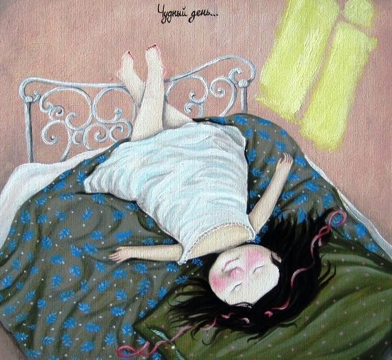 Ложиться спать молодой женщине следует около часа ночи. B постели - перелистывать французский роман. Засыпая, ни о чем грустном, неприятном и тяжелом не думать, в особенности об убийцах, нищих, мышах, пауках, привидениях, сиротах, страшных болезнях и пожарах.