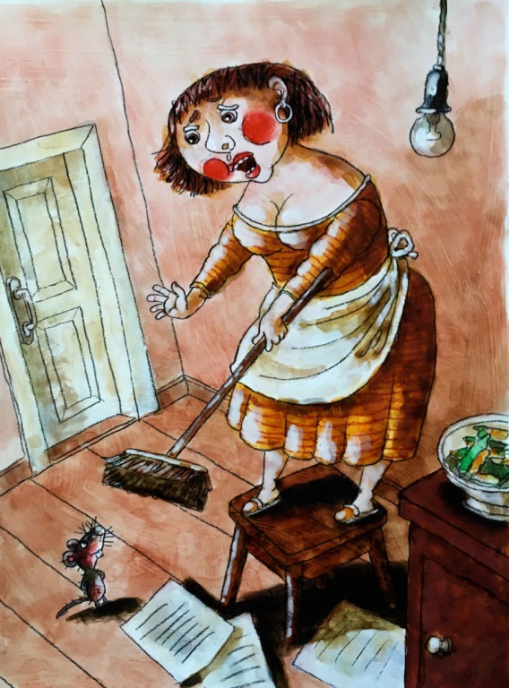 Потом пришёл муж и спас всех шваброй. Бросил, промахнулся, и уже по звону посуды мышь поняла, больше здесь ей не рады. Пора.