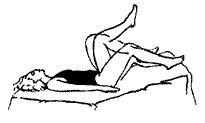 Положение: лежа на спине, руки вдоль туловища. Согните ноги в коленях, не отрывая стоп от пола. Медленно выдыхая, втяните живот. Медленно вдыхая, надуйте живот.
