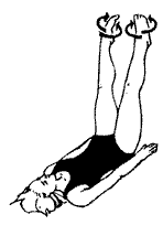 Лежа на спине, расположив руки вдоль туловища, равномерно дыша, попеременно скрещивайте ноги, чередуя их.