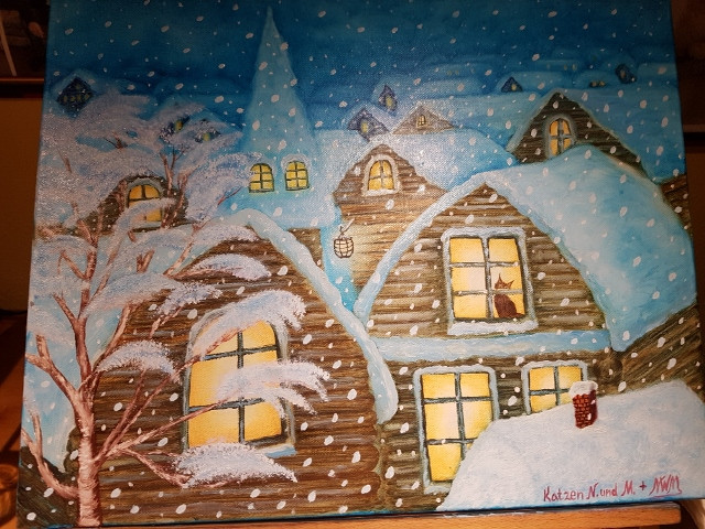 Эта картина, Декабрьская сказка, написана в стиле художника Надежды Ильиной, у которой я беру Мастер классы и стиль которой мне так же очень нравится.