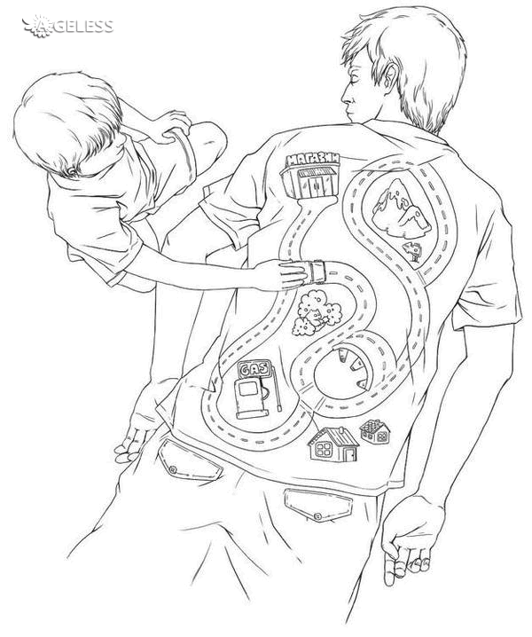 Разрисованная майка, по которой дети, в соответствии с картой, могут возить машинки или паровозик и одновременно делать своему родителю массаж. Это может стать самым простым способом, сочетающим для взрослых отдых после рабочего дня и игровые занятия с детьми.