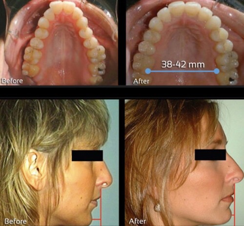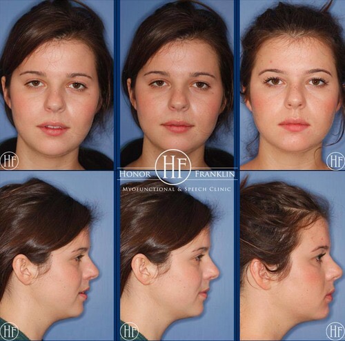 фото с сайта, пациентка до и после лечения по системе orthotropics на аппарате Bioblock
