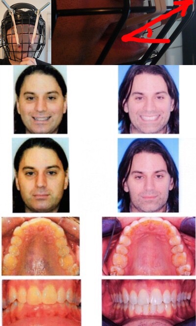 Американец Плато Пауэрс (Plato Powers) — очень интересная личность, который для балансировки своего лица и тела экспериментировал со множеством методов. Представленный выше результат является синтезом использования им расширяющего верхнюю челюсть внутриротового устройства Bioblock и вытягивания максилл вперед посредством тяг, привязанных к… бейсбольному шлему, что необходимо производить полчаса в день. Подробности методики с фотографиями можно посмотреть здесь — http://jawpain-tmjtreatment.com (на английском). Несмотря на то, что метод довольно экзотичен, он даёт свои результаты, и на Starecta Community на фейсбуке (Плато балансировал по этой методике тело) имеются впечатляющие фото одного из последователей этого метода (группа закрытая, и я не могу размещать здесь фото без разрешения владельца). Но, несмотря на это, на мой взгляд, этот метод выдвижения максилл подходит только мощным мужикам с крепкой шеей или бодибилдерам, каковым и является Плато. Его история балансировки тела методом Starecta обязательно появится на страницах этого блога, в рамках же этой статьи следует сказать, что, хотя сплинт Starecta и не выдвигает максиллы вперёд, он обеспечивает физиологически правильное положение языка и развитие «взрослого» типа глотания.
