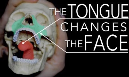 Дело в том, что развитие верхней челюсти зависит именно от силы мышц языка — если он находится в физиологически правильном положении на верхнем нёбе, упираясь кончиком в нёбный бугорок немного позади передних зубов, то этим он выталкивает максиллы вперёд и вверх. Слабый неразвитый язык эту функцию выполнять не может, а потому максиллы опускаются. Именно постоянное давление силы языка на верхнее нёбо создаёт привлекательные, развитые вперёд лица с широкой верхней челюстью и прямыми зубами, высокими скулами и красивой формой глаз с мягким расслабленным взглядом. Приложение силы языка на «крыше рта» — нёбе — именно это позволяет развиваться лицу в горизонтальном направлении, а не вытянутом вниз вертикальном.
