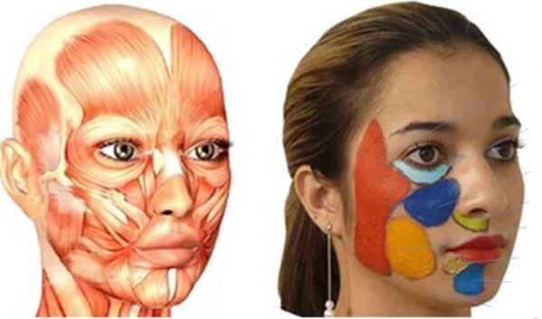 На своей очаровательной русской жене британский доктор Майк Мью (развивающий метод горизонтального роста лица orthotropics) демонстрирует влияние мягких тканей на красоту лица. При этом обозначенная синим часть максиллы особенно важна для достижения привлекательности. Красным обозначена боковая часть скул, синим — внутренняя. Причём это одна и та же кость — максилла, находящаяся под приложением силы разных мышц. Сбоку на неё воздействует жевательная мышца, в то время как положение внутренней части максиллы зависит… от положения языка!