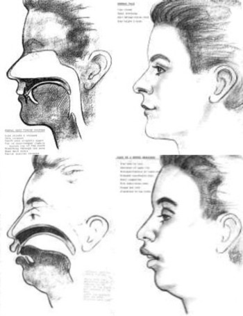 Правильному положению языка ребёнок должен быть обучен с детства, вернее, оно должно развиваться ещё с младенческого возраста, когда ротовой аппарат ребёнка делает очень сложную работу по сосанию материнской груди (и, чем дольше это происходит — тем лучше!) Впоследствии мы должны были бы есть твёрдую пищу, как наши предки. Но, так как в современном мире это происходит всё реже и реже, то человек с нормальным черепно-лицевым развитием становится всё более редким явлением. Но, вернёмся к нашим максиллам, и каким образом, раз уж не сложилось раньше, можно выдвинуть их вперёд и расширить во взрослом возрасте.